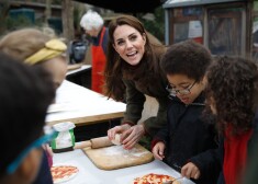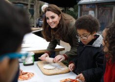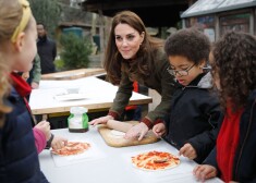Hercogiene Ketrīna kopā ar skolēniem gatavo picu