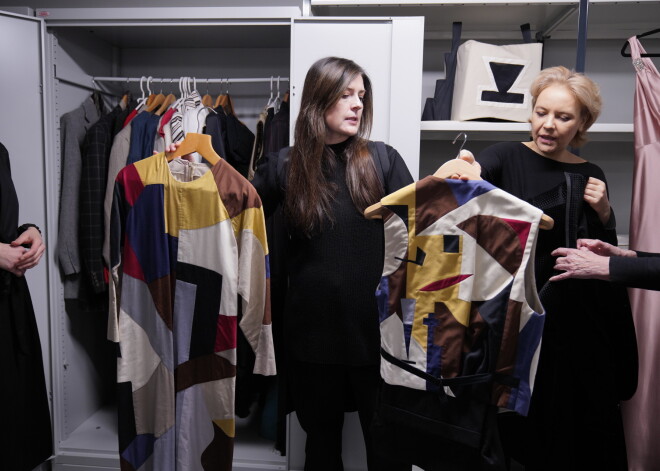 FOTO: "Homo Novus" komanda dāvina filmas kostīmus Kino muzejam