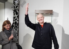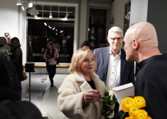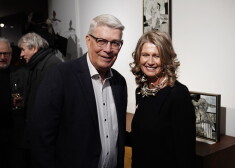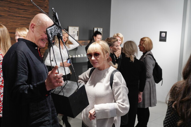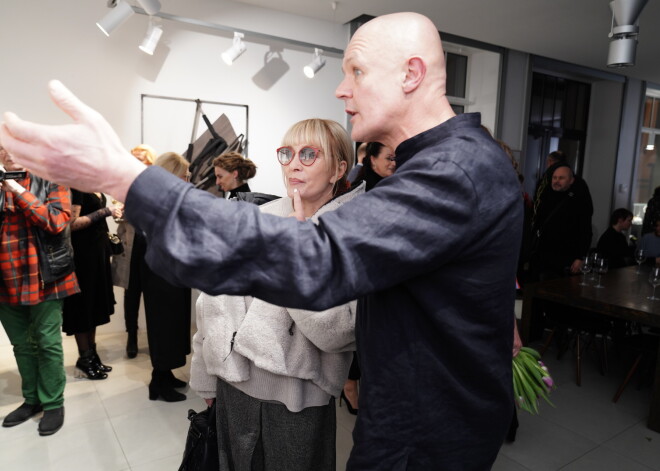 FOTO: Laima Vaikule pārsteidz ar ierašanos mākslinieka Roberta Koļcova izstādē