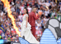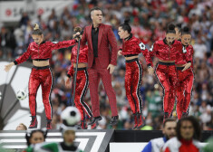 Britu dziedātāja Robija Viljamsa uzstāšanās Pasaules kausa izcīņas finālturnīra atklāšanas cermonijā Maskavā, "Lužņiku" stadionā.