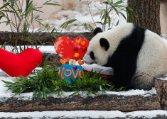 Maskavas zooloģiskajā dārzā arī svin Valentīna dienu. Šajos romantiskajos svētkos ar dāvanām un gardumiem iepriecināta panda.