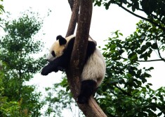 Ko mīlīgāku grūti iedomāties: panda Valentīna dienā rotaļājas ar sirds formas spilvenu