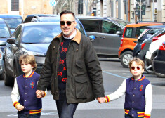 Mūziķis Eltons Džons ar laulāto draugu kinorežisoru Deividu Fērnišu un dēliem Zahariju un Eliju bauda pavasara brīvdienas Romā.