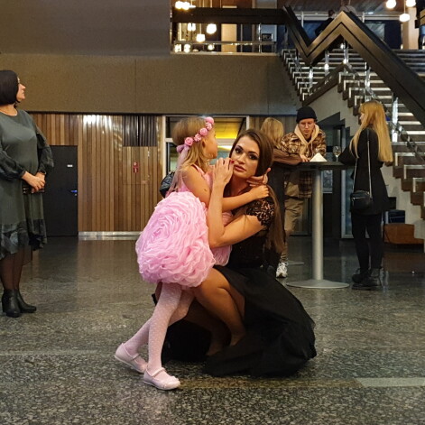 Viena no vakara krāšņākajām viešņām bija erotisko grāmatu autore Karīna Račko, kura svinības un koncertu apmeklēja kopā ar piecgadīgo meitu Šarloti. Karīna bija posusies melnā mežģīņu topā ar stilīgiem svārkiem, ko no sava skapja viņai aizdevusi bija stiliste Signe Valtere, kad Račko bija ieradusies pie viņas uzklāt vakara grimu. Savukārt piecgadīgais meitēns bija saposts 200 eiro vērtā kleitā, kas pēc četru stundu ilgiem meklējumiem atrasts uzņēmējas Kristīnes Līpiņas veikalā “Mini mode”.