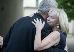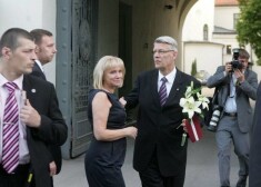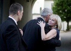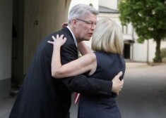 Lilita Zatlere, dodoties projām no Prezidenta pils, apskauj vīru