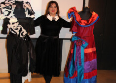 Baiba Sipeniece-Gavare rāda labdarības izsolē nodotos skatuves tērpus