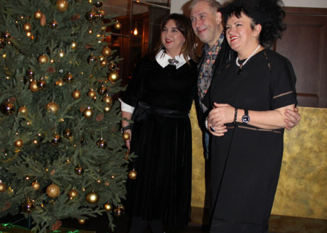 Baiba Sipeniece-Gavare rāda labdarības izsolē nodotos skatuves tērpus, par ko saņemtos līdzekļus nodos mūziķa Ūdrīša rehabilitācijai.
