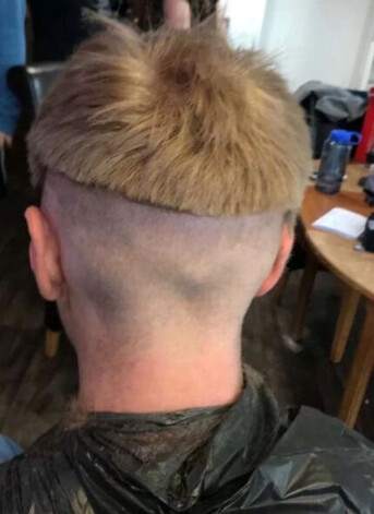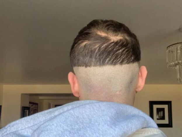 20 gadus vecajam Metam gribējās izveidot šobrīd vīriešu matu frizūru modē tik iecienīto “skin fade” griezuma efektu, taču viņš pārvērtēja savas spējas. Tā vietā sanāca pilnīgi gludi izskūts pakausis un kā ar nazi nogriezta līnija, kur sākas mati.