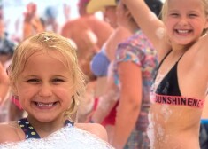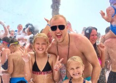 Hokejista Kaspara Saulieša, viņa sievas Katrīnes un pāra meitu Kerijas un Kortnijas atpūta Turcijā 2019. gada maijā.