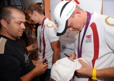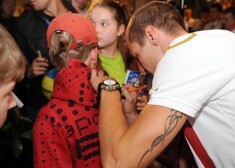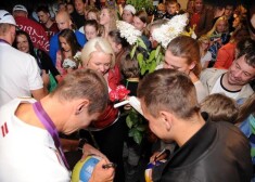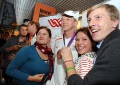 Līdzjutēji lidostā "Rīga" sagaida Mārtiņu Pļaviņu un Jāni Šmēdiņu
