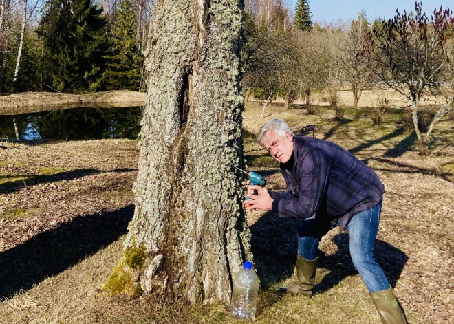 Aigars Krēsla cītīgi tecina bērzu sulas