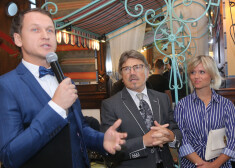 Miljonārs Gunārs Ķirsons ar meitu Eviju Ķirsoni-Slavinsku restorāna “Lido Damme” atklāšanā Imantā.