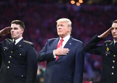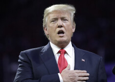 Tramps izgāžas ASV himnas izpildījuma laikā Atlantā