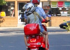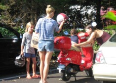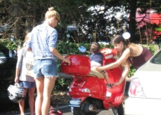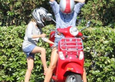 Gvineta Paltrova ar meitu Eplu uz skūtera