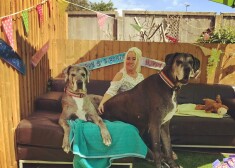 Dzimšanas dienas svinības apmeklēja arī Fredija labākā draudzene - kaimiņmājas meitene Ērina. Gadu jaunāka par Frediju un, izskatās, ne īpaši garāka. Un droši vien krietni vieglāka, jo suns sver jau 95 kilogramus. Mēnesī viņa paēdināšana - suņu barība, maltā gaļa, ceptas vistiņas un dažnedažādi našķi - izmaksājot ap 560 eiro.