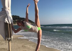 Tas ir kas nebijis - balerīna tika atrādījusi gan neskaitāmus špagatus pludmalē Maldivu salās, dzimtenes zemē sniegā, bāros, restorānos, protams, mājās un vingrošanas zālēs. Bija uzsēdusies pat uz mašīnas jumta. Un tagad savai performancei ir izmantojusi arī dzīvnieku.