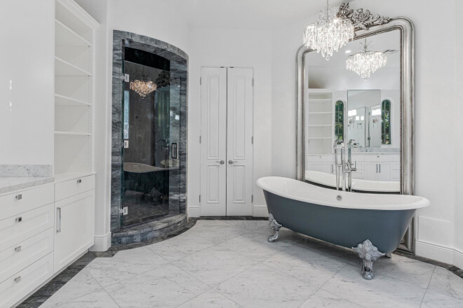 Saimnieku guļamistabai līdzās ir karaliska vannasistaba ar elegantu vannu. Tā stāv uz dzelzs kājām, kas atgādina masīvas zvēra ķepas. Virs vannas ir lustra, bet aiz vannas liels spogulis.
