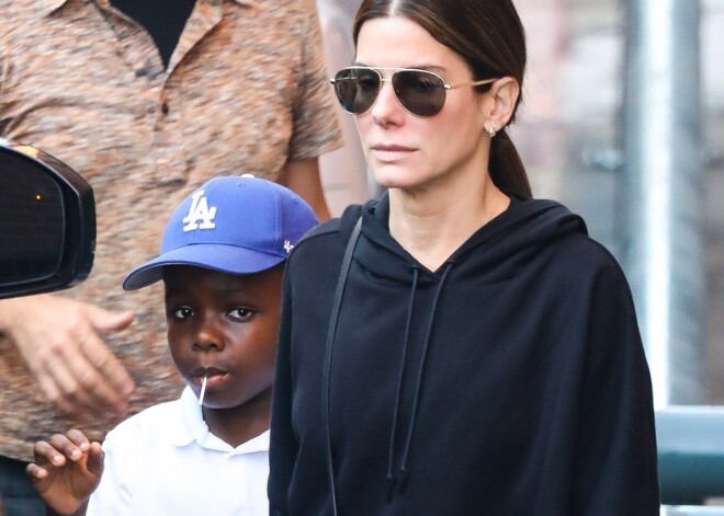 Sandra Bulloka ar bērniem Lūisu un Leilu