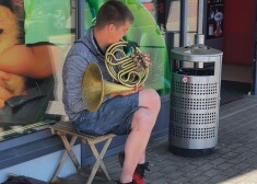 Kā raksta žurnāls "Kas Jauns", Liepājā pie "Rimi" lielveikala centrālajām durvīm regulāri sēž kāds puisis un spēlē mežragu. Ziema vai vasara, lietus vai sniegs – jau vismaz gadus piecus. Vietējie viņu sen uztver kā savējo – pieklājīgs un visādi citādi patīkams zēns. Apsargs viņam vienīgajam tur atļāvis nolikt savu veco saliekamo sēžamo, ieplīsušo porcelāna trauku un ar mūziku kaut ko papelnīt. Kurš iemet naudu, kurš padalās ar bulciņu, kolas pudeli vai pašceptas maizes klaipu no tirgus letes.