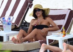 Kāpēc Evas Longorijas ķermeni pludmalē sedz plāksteri? FOTO