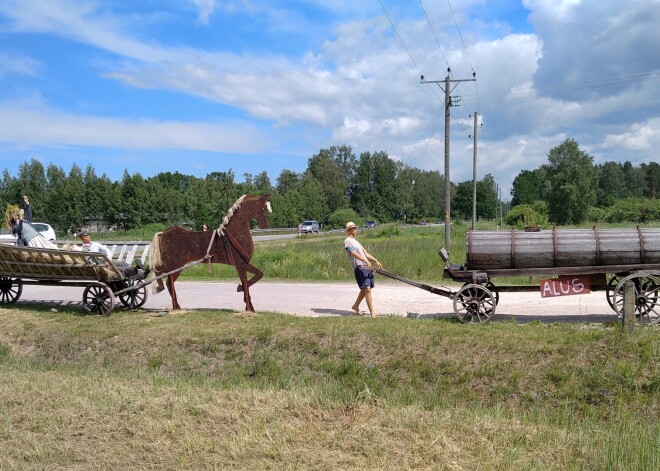 Uz Liepājas šosejas autobraucējus Jāņos sveicina asprātīga svētku dekorācija