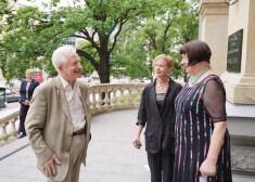 FOTO: mākslas mīļotāji apmeklē "pieclatnieka Mildas tēvam" Rihardam Zariņam veltītās izstādes atklāšanu; ierodas arī Egils Levits