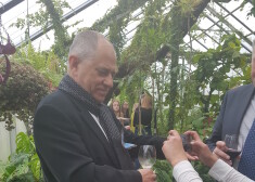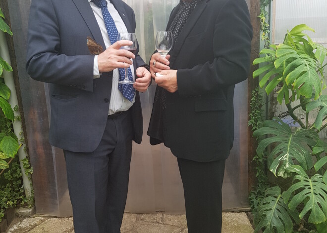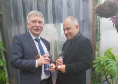 Ekspremjers Gailis un rektors Muižnieks priecājas kā bērni