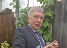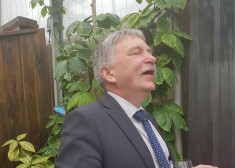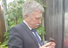 Māris Gailis un Indriķis Muižnieks LU Botāniskajā dārzā jūsmo par taureni.