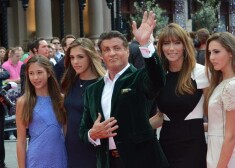 Silvestrs Stallone ar sievu Dženiferu Flavinu un meitām – Sofiju Rouzu, Sistinu Rouzu un Skārletu Rouzu – apmeklē filmas „The ...