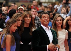 Stallone ar sievu un meitām filmas "The Expendables 3" pirmizrādē
