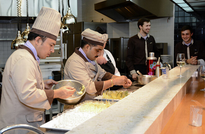Restorāna “Galleria d’Arte” pavāru kolektīvu vada šefpavārs Senjeev Nagi (no kreisās).