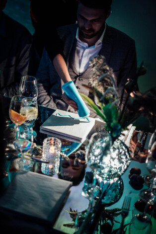 Vakariņās piedalījās tādi sabiedrībā zināmi cilvēki kā interjera arhitekte Evija Ķirsone, māksliniece Ieva Bondare, žurnālisti un pasākumu vadītāji Lelde un Aivis Ceriņi, aktrise Karīna Tatarinova un citi.