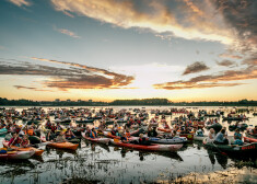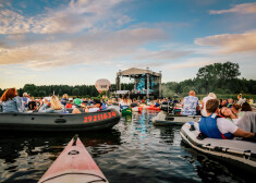 Klausītāji dažādos ūdens transportlīdzekļos pulcējas festivālā "Laivā