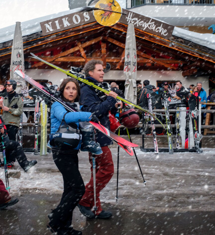 Filmā "Lejup no kalna" ("Downhill") galvenajās lomās iejutušies Džūlija Lūisa-Dreifūsa un Vils Ferels, bet pats darbs ir 2014. gada zviedru filmas "Turist" rimeiks.