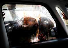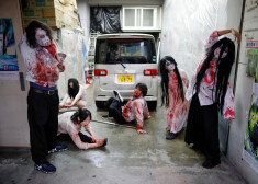 FOTO: Tokijā cilvēki gaida garās rindās, lai piedalītos biedējošā izklaidē