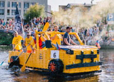 Vērienīgo peldlīdzekļu prezentāciju, ātruma braucieni un sacensība par oriģinālākās, atraktīvākās, inovatīvākās, treknākās, drošākās, amizantākās un ātrākās piena paku laivas titulu. Domājot par nerealizētā iepakojuma otrreizēju izmantošanu un vienlaicīgi atbalstot vienu no atraktīvākajiem pasākumiem Jelgavā, galveno būvmateriālu, komandām kopā izdalot 42 000 piena pakas, nodrošina AS “Tukuma Piens”.