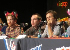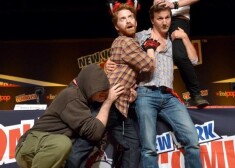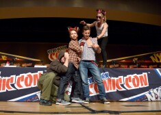 Makolijs Kalkins kopā ar citiem aktieriem apmeklē „Comic Con” konferenci Ņujorkā