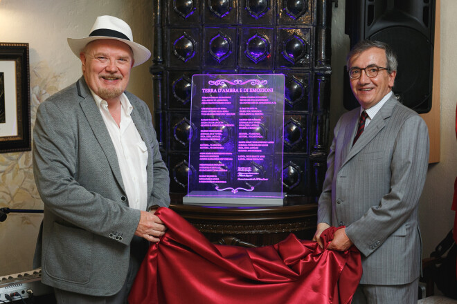 Pasākuma laikā Itālijas vēstnieks Latvijā Stefāno Taliani de Markio un dziesmas autors Čārlzs Gudžers restorāna "LaFelicita" telpās atklāja arī īpašu piemiņas plāksni ar dziesmas "Dzintarzeme" jeb "Terra d’Ambra e di Emozioni" vārdiem, kuri ir ļoti spēcīgi, atsaucas uz Latvijas dabu, simboliku un uzsver latviešu tautas spēju pārvarēt grūtības un nepadoties izaicinājumu priekšā. Piemiņas plāksni restorāna apmeklētāji un viesi varēs apskatīt arī turpmāk.