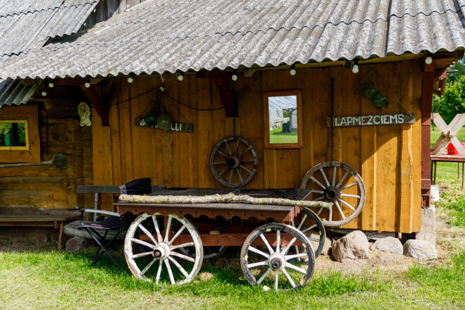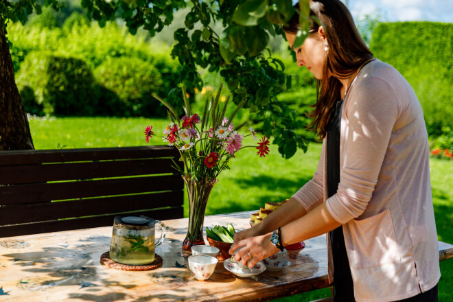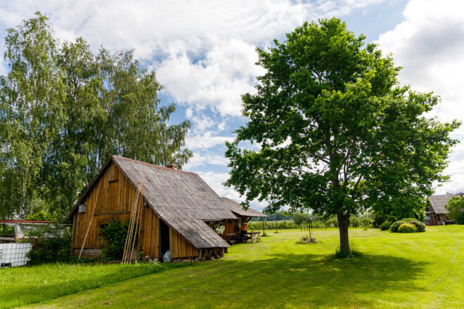 Otrdienas rītā Vimbu mājās saimnieki mūs sagaida ar svaigu piparmētru tēju, kraukšķīgiem gurķīšiem no vecāku dārza un dzeltenu biezpienmaizi no lauku olām. Jūs jau zināt – tādu, kas pati kūst mutē. Mēs sēžam paēnā zem ābeles, puikas, Viesturs un Kārlis, istabā liek lego, pie mammas sāna glaužas mazā Elza, kaut kur klīst Ņaudulis, un uz kādu kumosu no galda cer divi lieli suņi – Lera ar dēlu Rūdi.