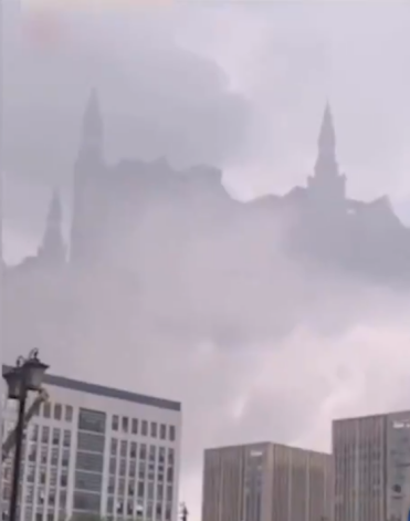 🇨🇳 Did a magical world just appear? A #castle-like mirage was photographed on Friday morning in Jinan, East #China's Shandong province. It is said to be a reflection of a shadow of a nearby housing estate.