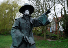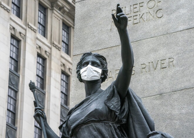 Sejas maskas aizsegušas arī statuju mutes