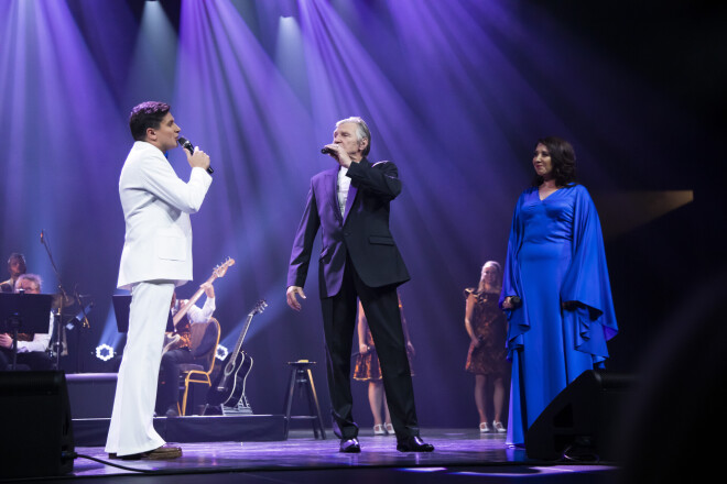 FOTO: krāšņi izskan muzikālās vīzijas “Nora un Viktors. Zelta duetam 50” pirmizrāde