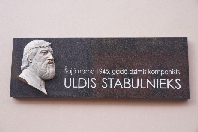 Ceturtdien, 8.oktobrī, Latvijas kultūras ministrs Nauris Puntulis un Rīgas domes Izglītības, kultūras un sporta komitejas priekšsēdētāja Iveta Ratinīka kopā ar komponista ģimenes pārstāvjiem un talanta cienītājiem pie A.Čaka ielas 33 nama atklāja komponista Ulda Stabulnieka piemiņai veltītu plāksni.