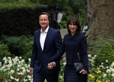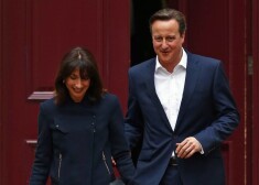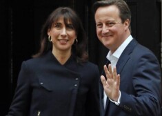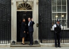 Deivids Kemerons ar kundzi Dauningstrītā pēc ziņām par triumfu vēlēšanās