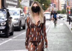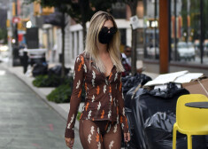 Modele Emīlija Ratažkovski dodas uz restorānu pavisam caurspīdīgā tērpā