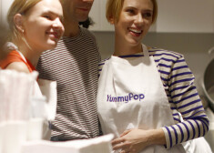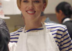 Skārleta Johansone tirgo popkornu savā veikaliņā Parīzē