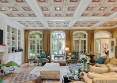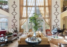 Plašajā viesistabā ir deviņus metrus augsti griesti un logs, kas sniedzas no grīdas līdz pat griestiem. Virtuve ieturēta bāli dzeltenos toņos, skapīši ir balti, bet darba virsma darināta no krāsaina granīta. Mājā ir arī sava bibliotēka, vīna pagrabs un biljarda/spēļu istaba.