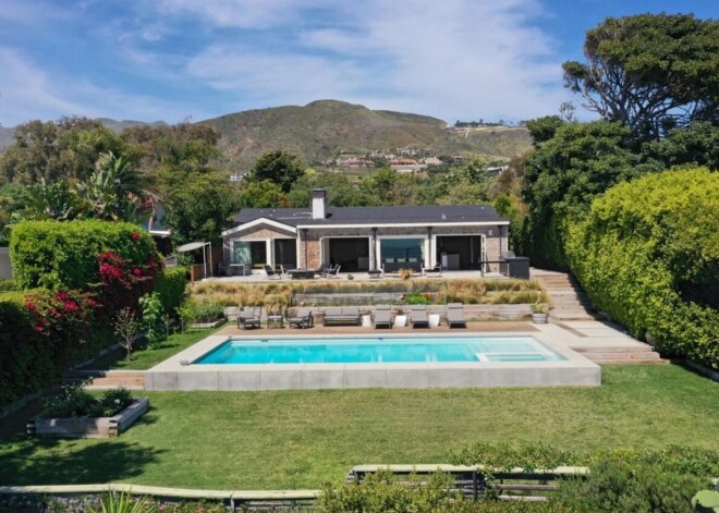 Māja uzcelta uz stāvas klints tieši virs Malibu iecienītajām smilšu pludmalēm. No Laviņjas jaunās mājas paveras skats uz okeānu.