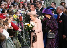 Lielbritānijas un Ziemeļīrijas Apvienotās Karalistes karaliene Elizabete II pie Brīvības pieminekļa sasveicinās ar tautu 2006. gada 18. oktobrī.