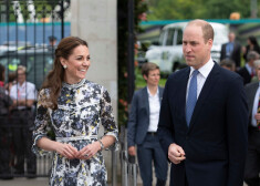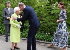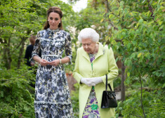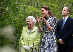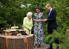 Elizabete II, princis Viljams un hercogiene Ketrīna Čelsijas ziedu izstādē
